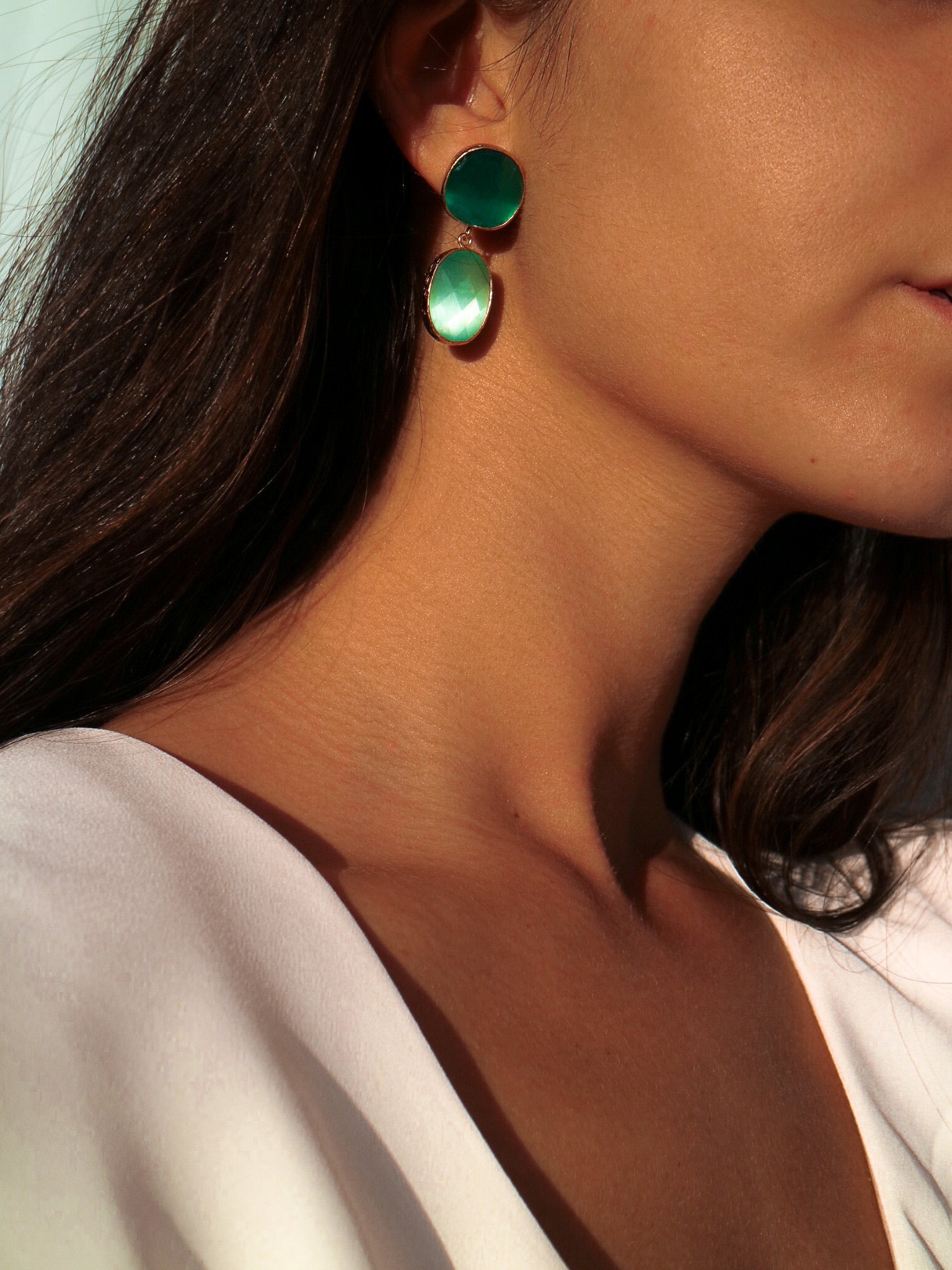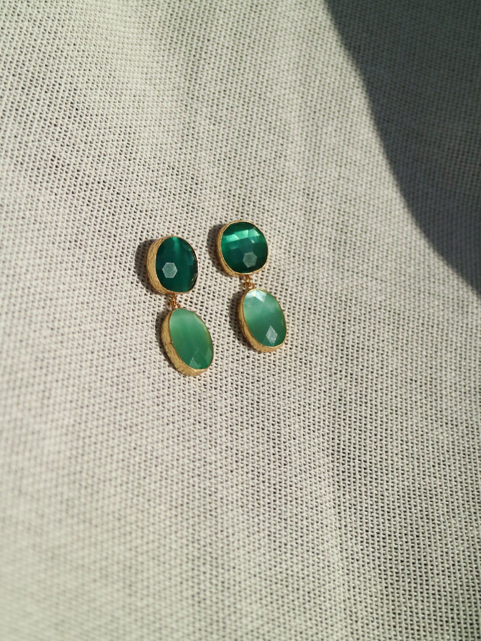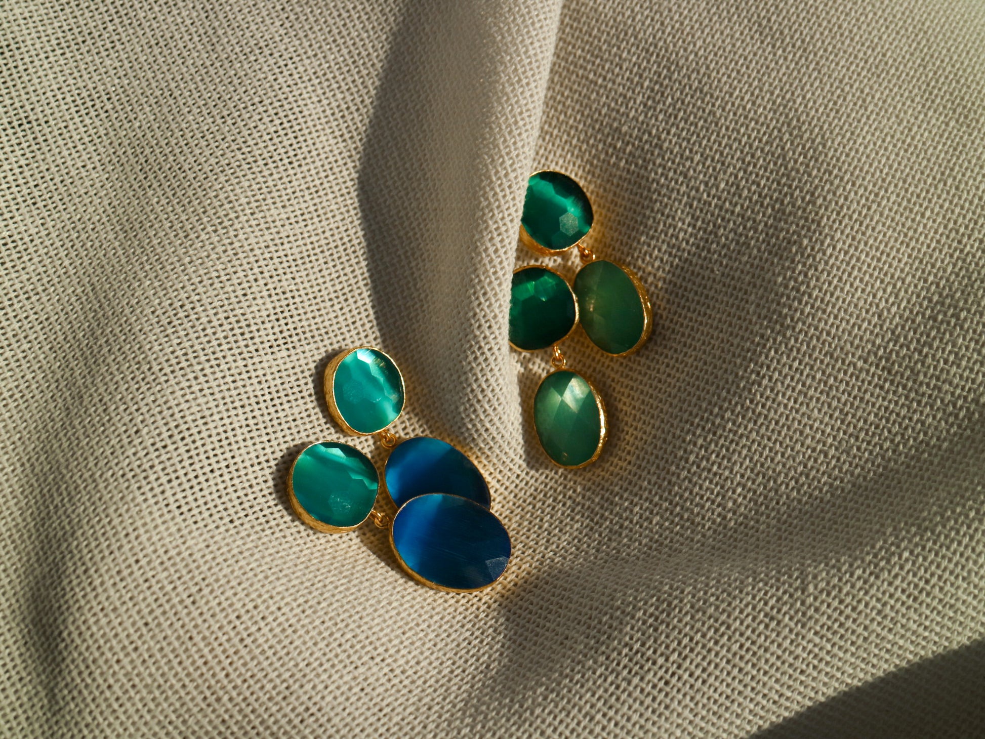 Pendientes bañados en oro de 21k con piedras semipreciosas de colores.
