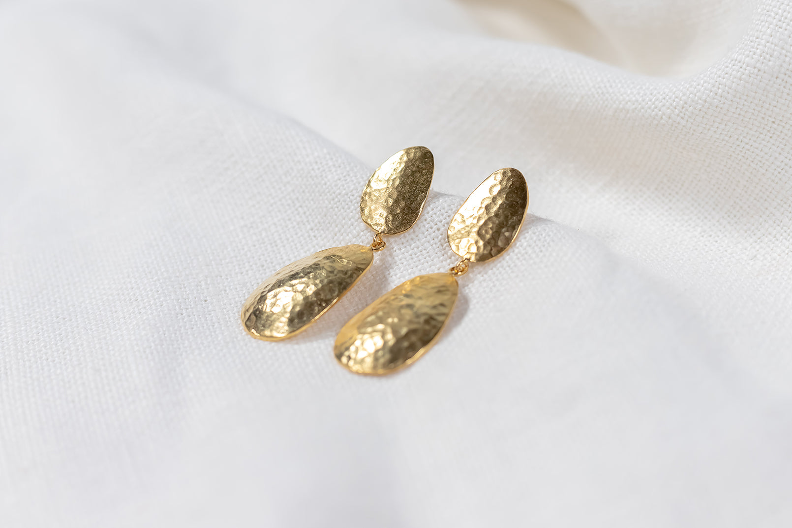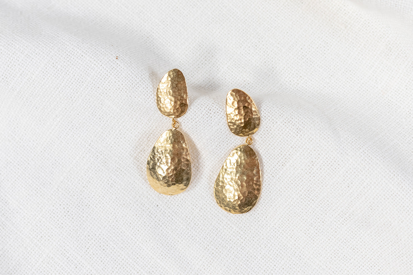 Pendiente en forma de dos lagrimas. Bañado en oro 21kt.