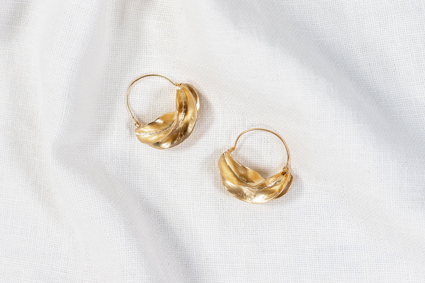 Pendiente representando hojas de laurel. Bañado en oro 21kt.