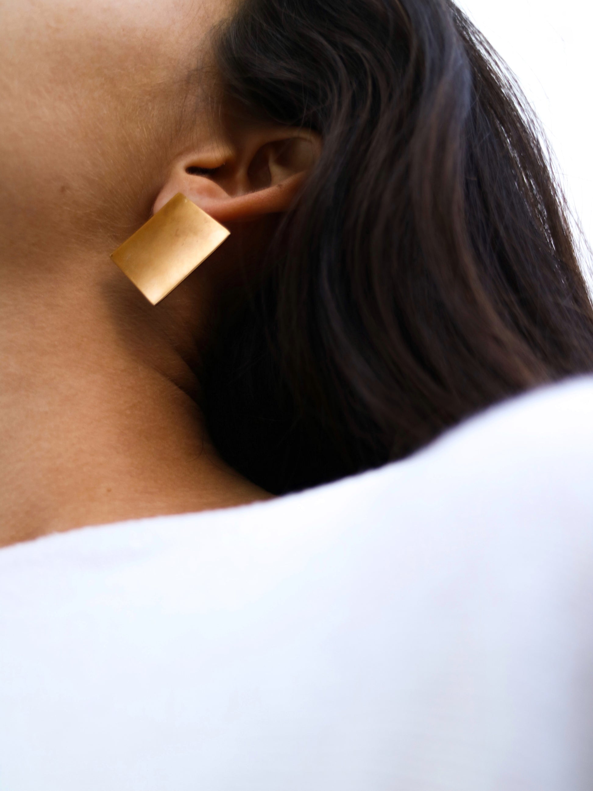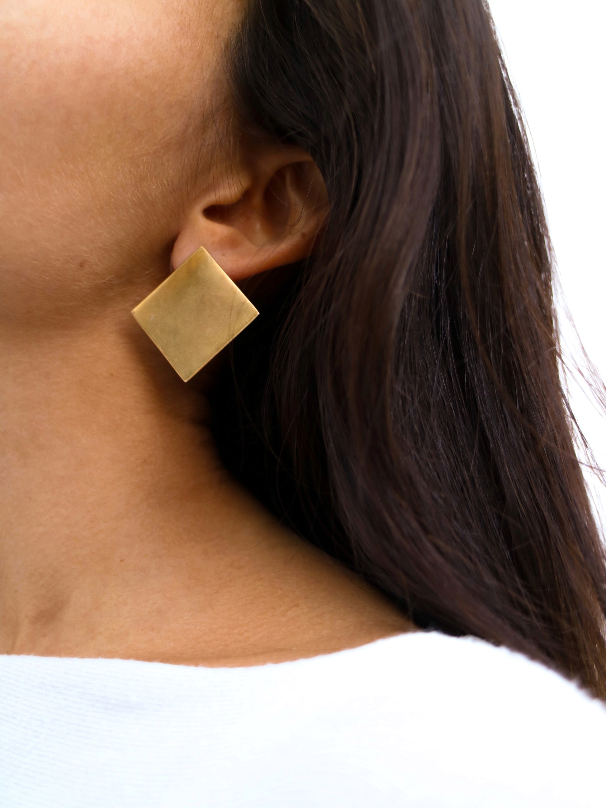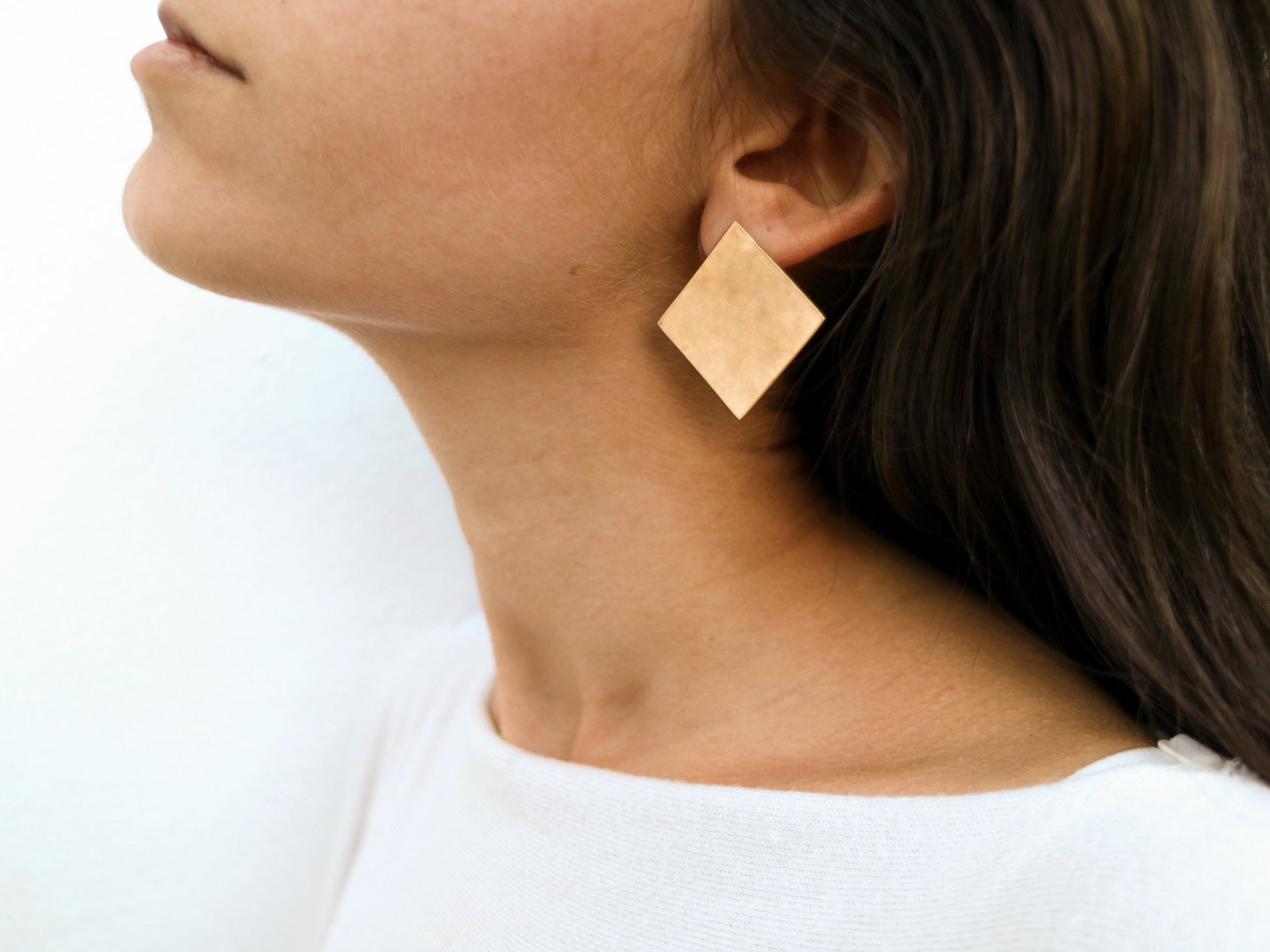 Pendiente efecto envejecido con forma de rombo dorado. Bañados en oro de 21kt.