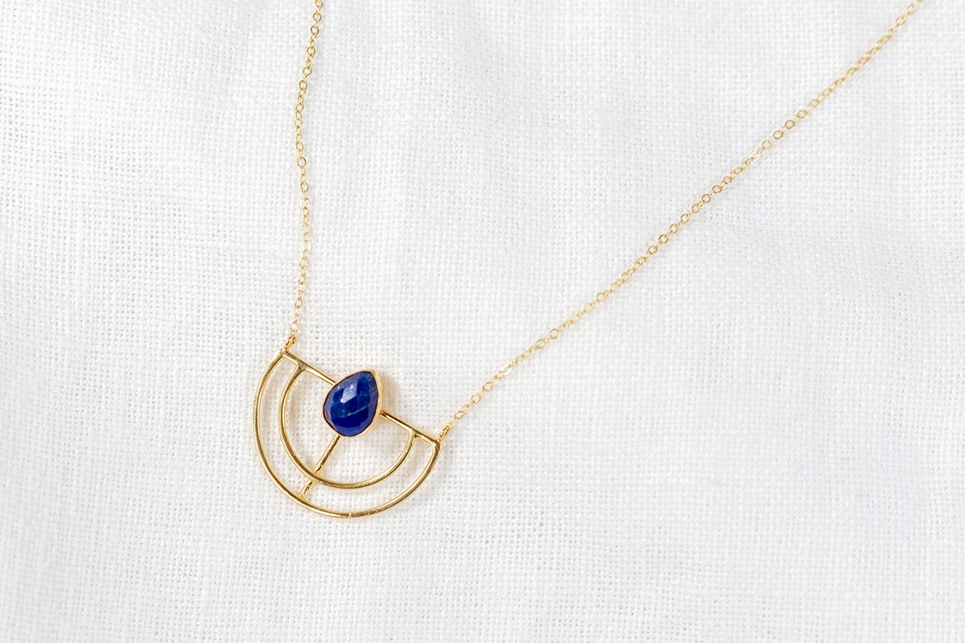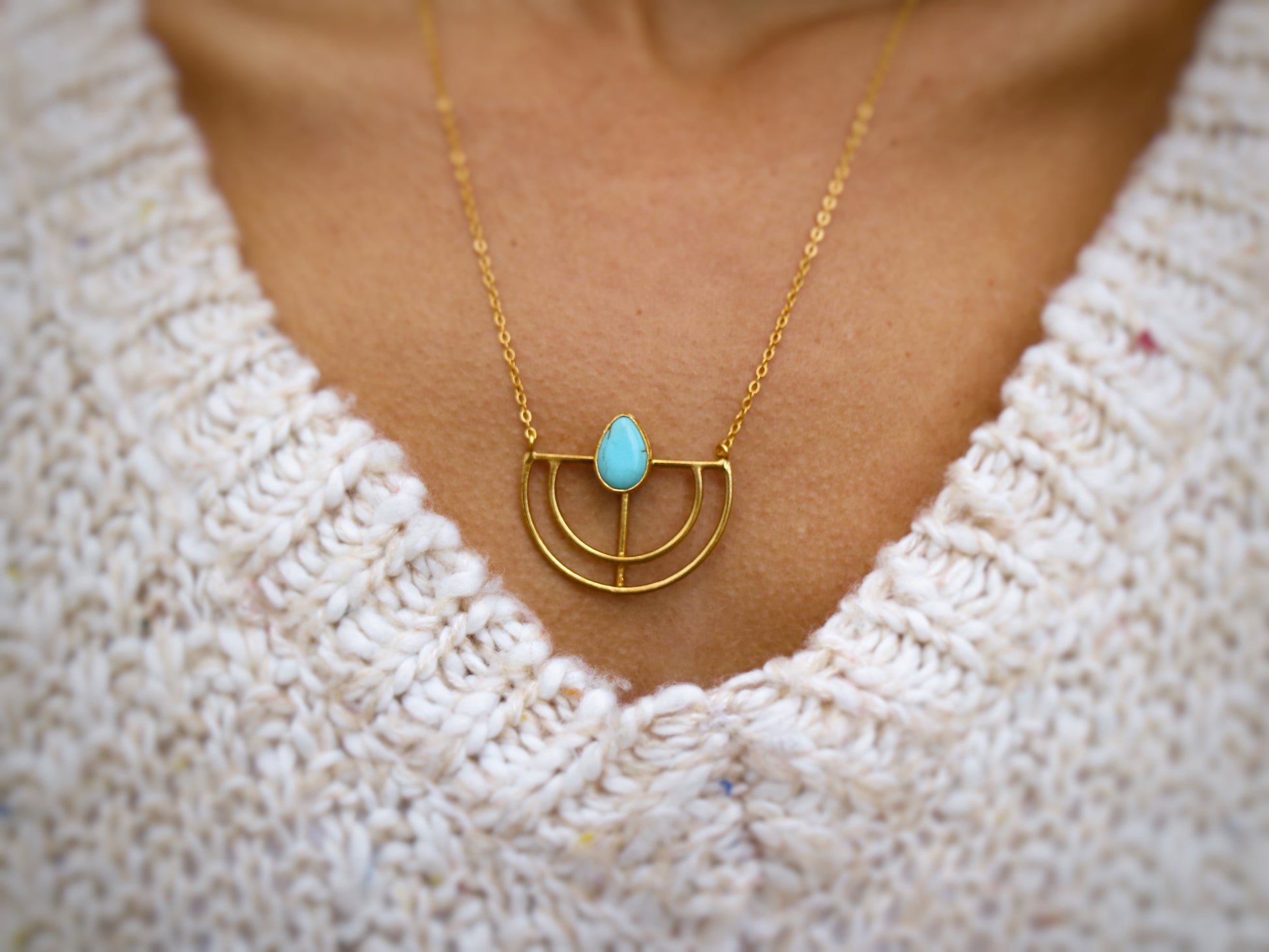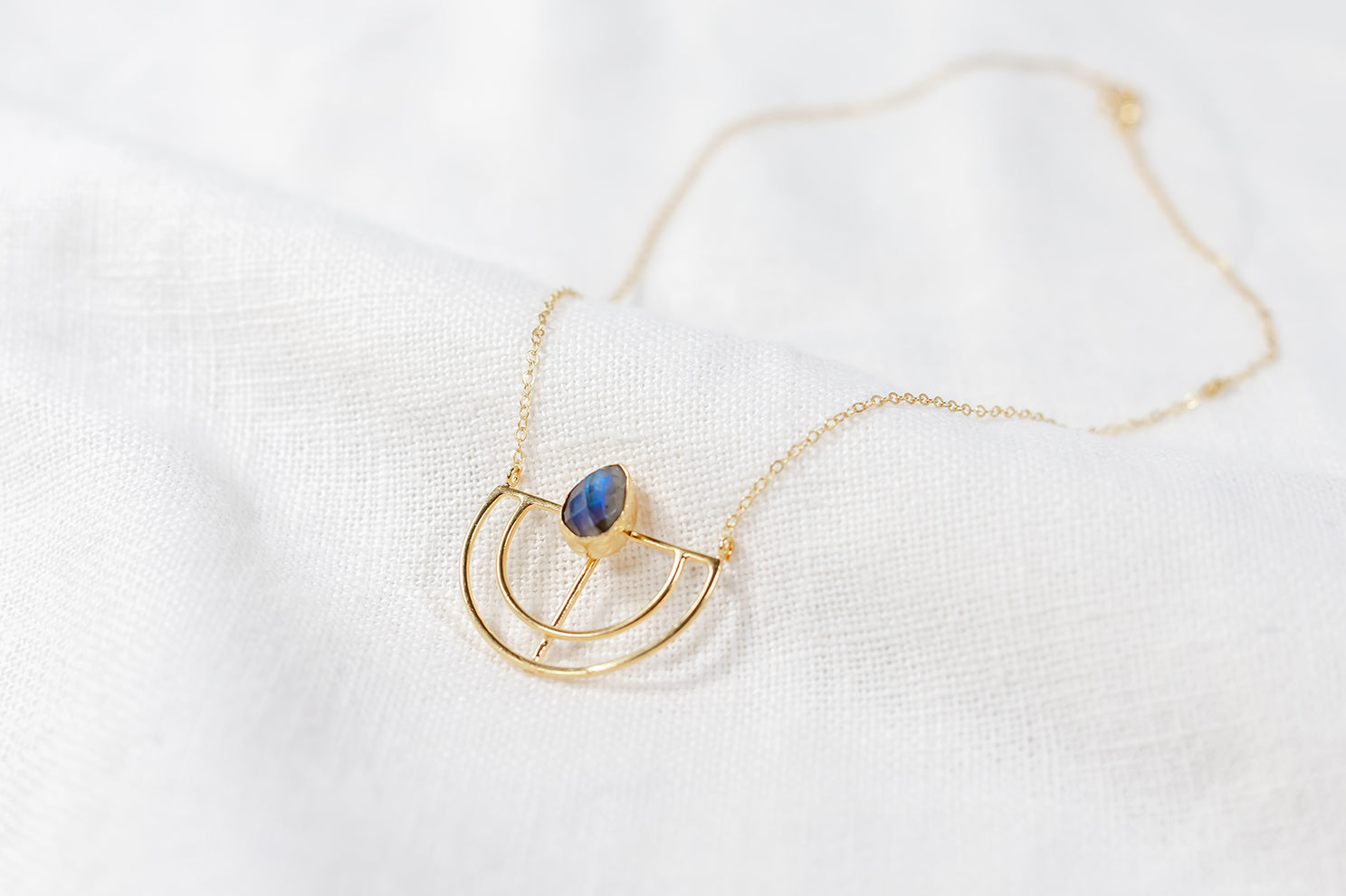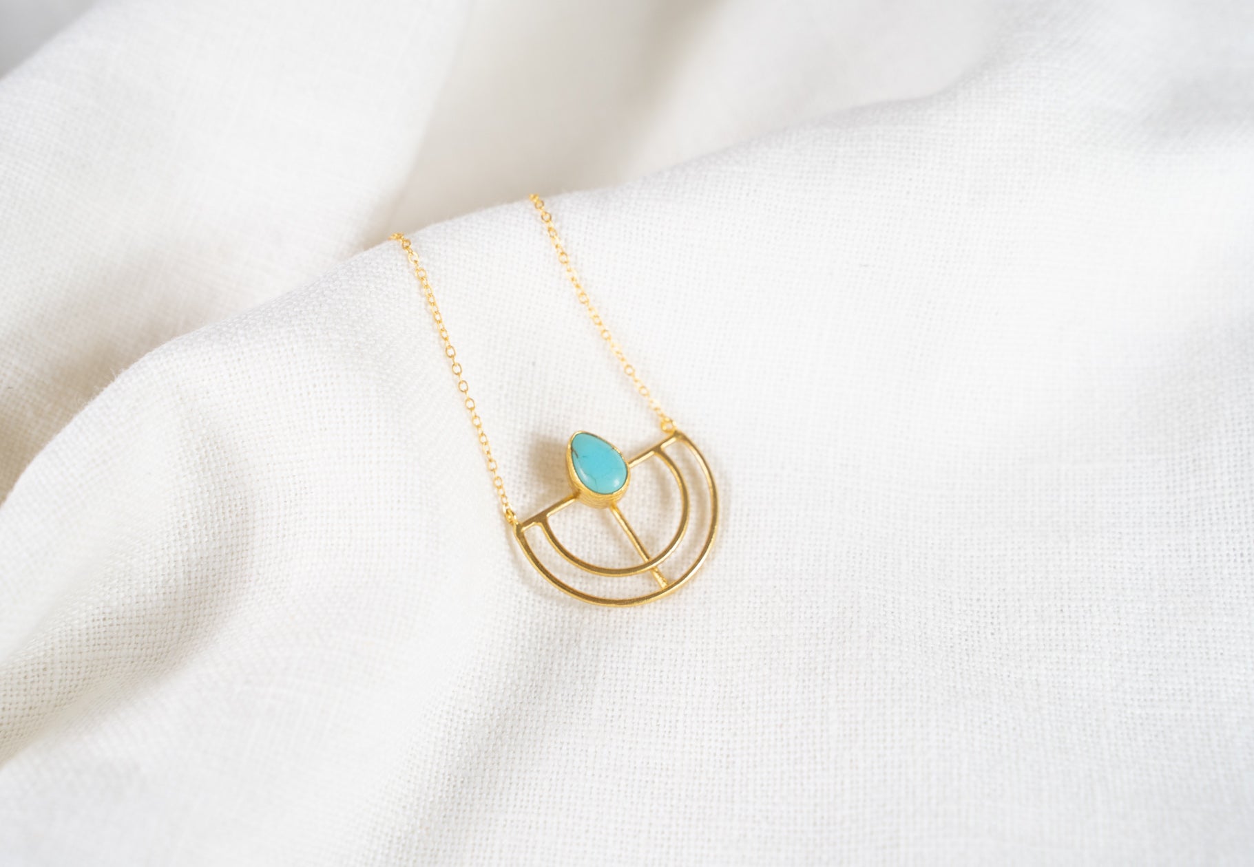 Colgantes de media luna con piedra central. Bañado en oro 21k.