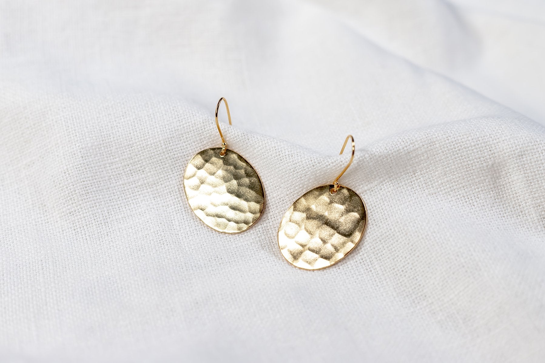 Pendiente ovalado con textura. Bañado en oro de 21k.