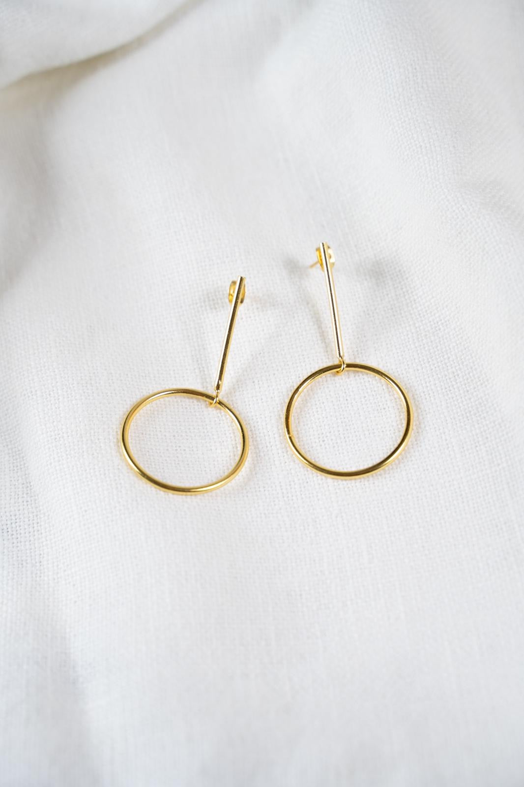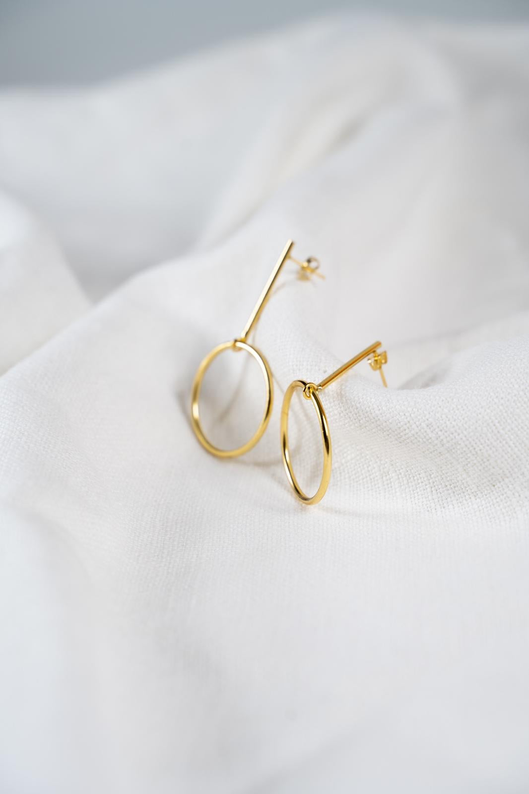 Aro con barra pendida. Un pendiete de dos piezas para todo tipo de ocasiones. Bañado en oro 21kt.