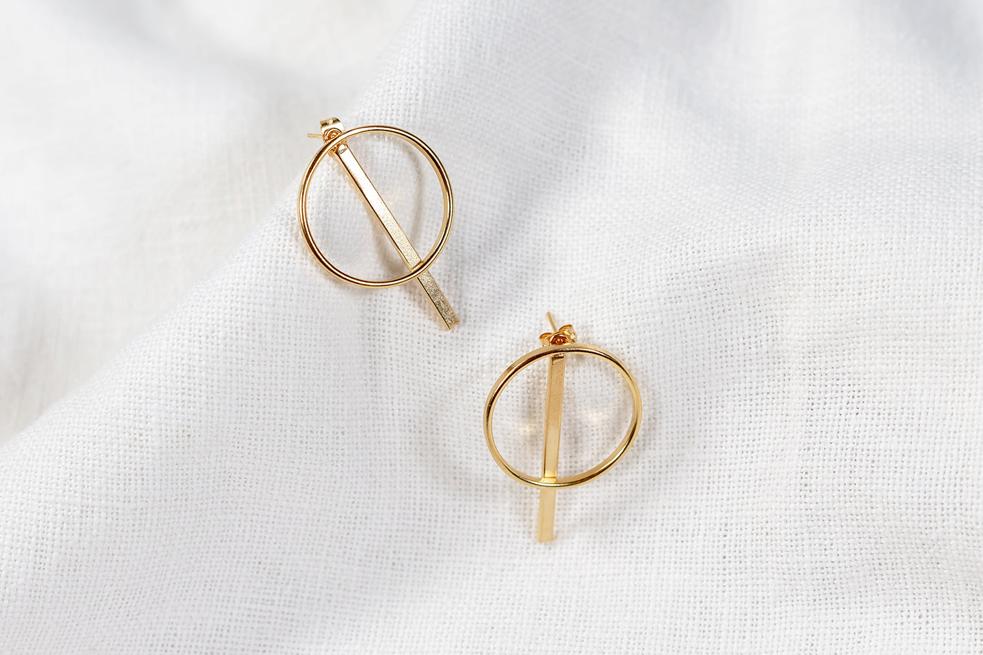 Aro con barra pendida. Un pendiete de dos piezas para todo tipo de ocasiones. Bañado en oro 21k.