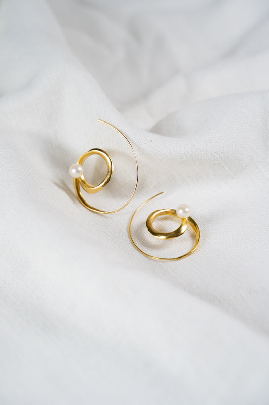 Andromeda – Pendientes Espiral Dorada con Perla