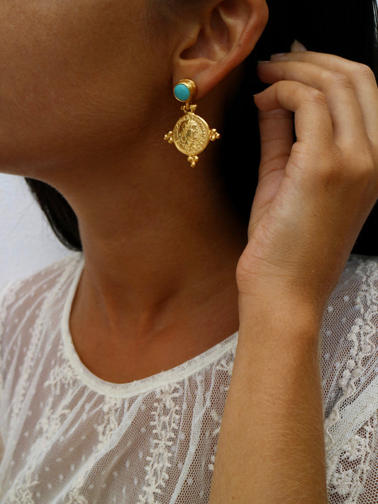 ¡Últimas unidades!Caronte – Pendientes Doble Moneda Romana Dorada