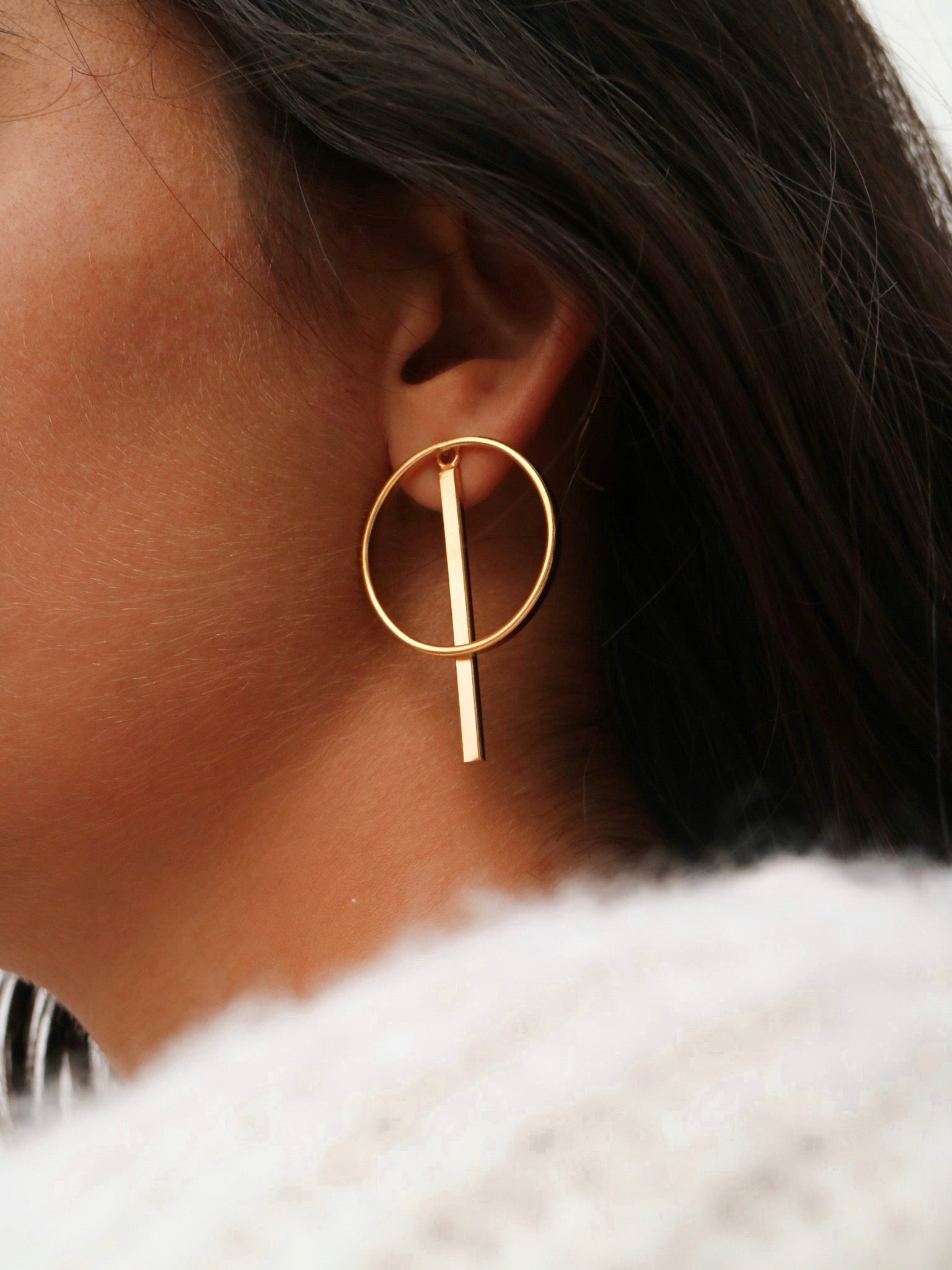 Aro con barra pendida. Un pendiete de dos piezas para todo tipo de ocasiones. Bañado en oro 21k.